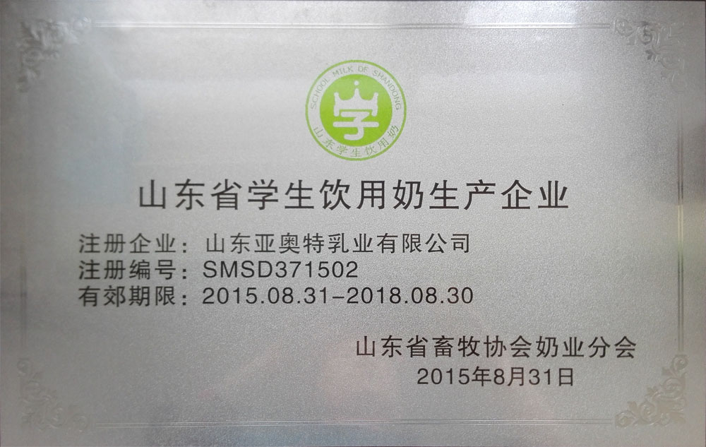 “学生饮用奶计划”自2000年11月15日实施,已覆盖全国28个省、市、自治区的224座城市。亚奥特乳业目前供应泰安、临沂、济宁、聊城、菏泽等全省9个市80余所学校,日供学生奶9万余份,该公司通过设立学生奶专用生产加工线、专用冷藏车运送的方式,做到每一批学生奶都可追溯。